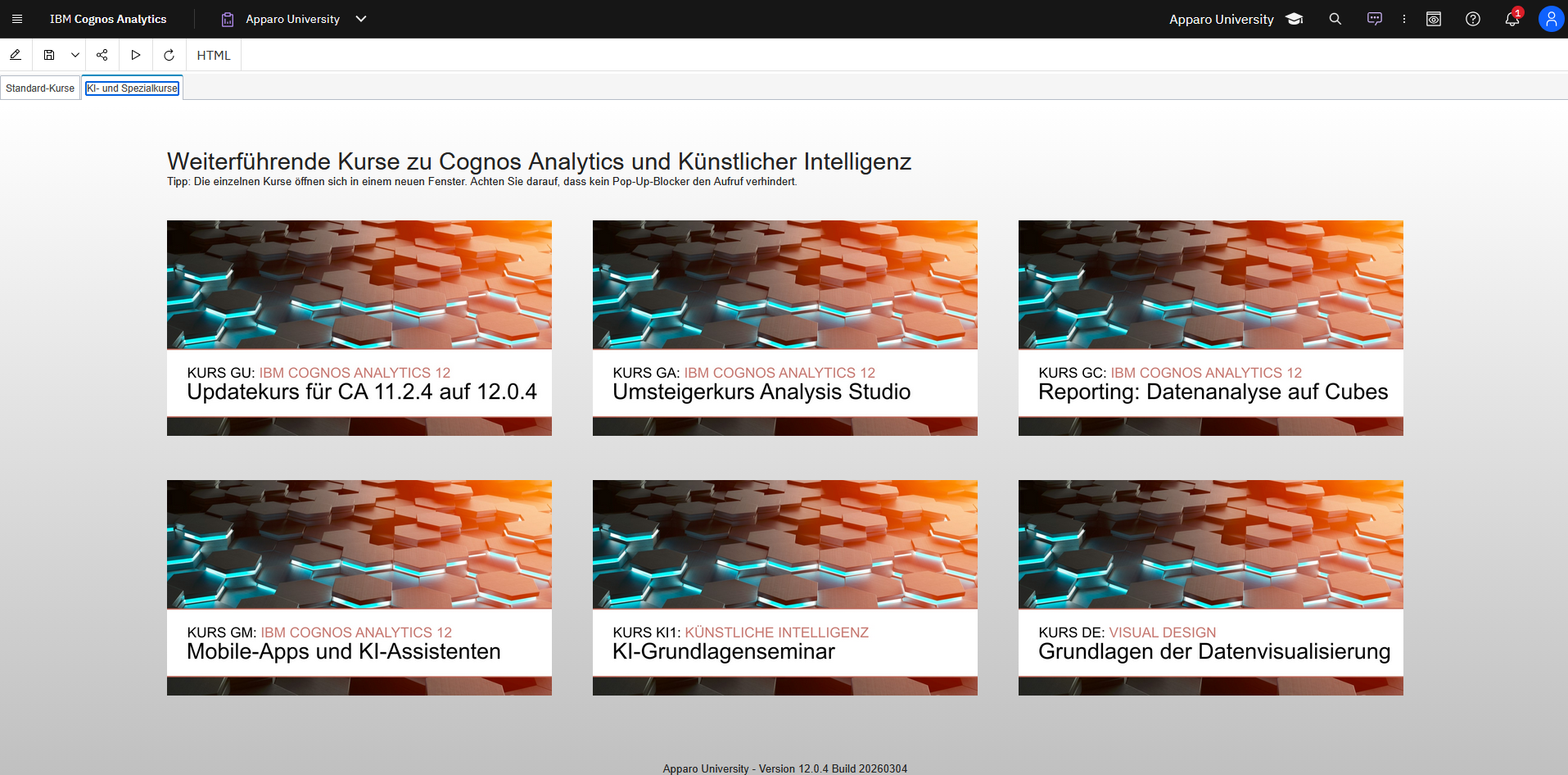 Für einen reibungslosen Umstieg und die langfristig erfolgreiche Nutzung von Cognos Analytics ist die Apparo University die ideale Ergänzung. Unser umfassendes Video-Lernmanagementsystem lässt sich direkt in Ihr Cognos Analytics-System integrieren. So erhält jeder Anwender genau die Schulungen, die er für seine Arbeit benötigt.